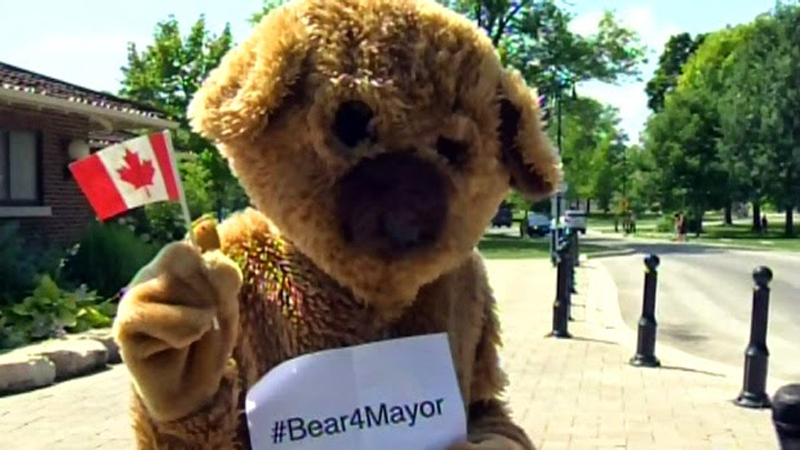 Last month, a bear unofficially running for Mayor of Kitchener made the news. Of course Bear4Mayor can’t actually run for mayor, because in order to become an official candidate requires the signing of some legal forms and the ability to speak in public. Instead, Bear4Mayor aims to promote discourse and awareness of this fall’s municipal election. “I hope that in my little way I can bring more attention to the fact that we have a municipal election happening,” he said in an e-mail to CTV Kitchener.