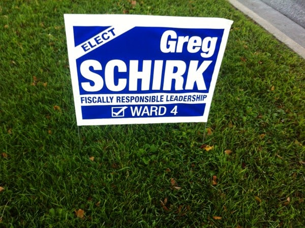 Perhaps fiscally responsible leadership starts with fiscally responsible graphic design. However, if signs are primarily to attract the attention of motorists, it is wise to make the surname huge to create name recognition, something that many others donʼt seem to understand.