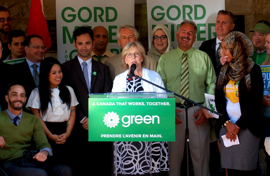 As for the Guelph riding specifically, May was asked what she thought the chances are for her party’s candidate in the Royal City, former Ontario Environmental Commissioner Gord Miller. May called Miller “one of the best qualified candidates in this election of any party,” and said that Guelphites, and indeed all Canadians, should stop thinking about voting strategically. “In a democracy, it’s about voting and not gaming the system,” May said. “It’s not a concern in Guelph, and right now the Conservative candidate is not positioned to come up the middle. You can vote for what you want.”