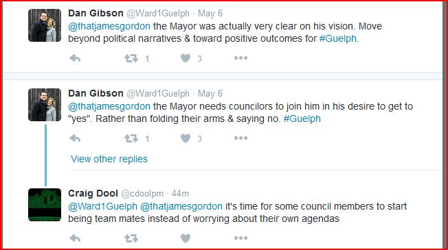 Gordon did not like the tone of some tweets that Councillor Dan Gibson said in reply to one posted by Gordon Friday while at the State of the City breakfast at the Delta Hotel and Conference Centre. But what happened in the first place? As the situation escalated quickly, there wasn’t much time to visit the background, but here’s the exchange on Twitter that became the new fiery flashpoint at tonight’s council meeting.