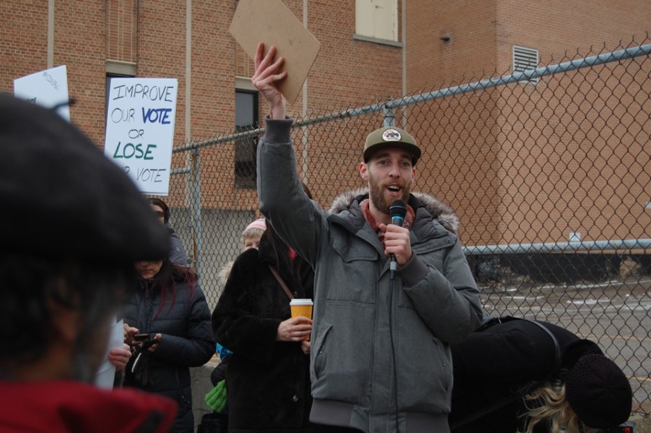 The protest lasted over an hour and the speakers list was a who’s who of active local politicos including Green Party of Ontario leader Mike Schreiner, Guelph-Wellington Coalition for Social Justice Chair George Kelly, former Wellington-Halton Hills NDP candidate Anne Gajerski-Caulry, Council of Canadians member Jane Thornton, and electoral reform advocates Steve Dyck, Susan Watson and David deWeert. The collective message was that Trudeau should keep his promise, and that the elimination of First-Past-the-Post (FPTP) is a necessity to avoid the rise of a Donald Trump-like figure to high office in Canada.