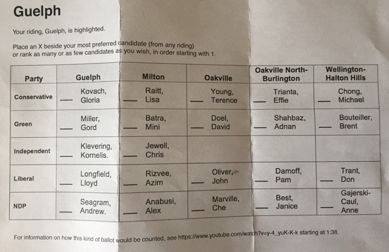 Well, even Becker admits that “there’s no doubt a political party is going to find ways to abuse this.” Might we hear cries of “So-and-so doesn’t represent Guelph because all those people from Oakville and Milton voted for him”? There may also be some confusion about the counting since the ballot offers so many different ways to cast your vote, and parties will definitely want the data to know where their vote is. It’s also maybe not be as proportional as some people might like.