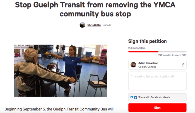 Petition For: Stop Guelph Transit from removing the YMCA community bus stop