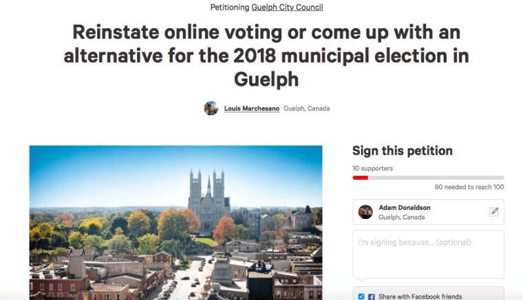 Petition For: Reinstate online voting or come up with an alternative for the 2018 municipal election in Guelph