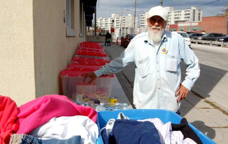 It’s a pleasant Friday afternoon on Baker Street. As he has for the last 24 weeks, Edward Pickersgill stands outside number 40 with a line of tables topped with totes filled with clothing, food stuffs and toiletries. Anywhere between 50 and 80 people stop by everyday for tampons, a new shirt, a box of cereal, or even just an apple and a bottle of water.