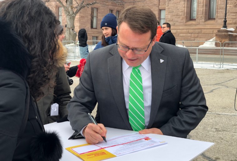 Several Members of Provincial Parliament with the New Democratic Party signed the petition, including Sandy Shaw and Suze Morrison. Guelph MPP and Green Party Leader Mike Schreiner also signed on to the petition while surrounded by students from the University of Guelph who attended.
