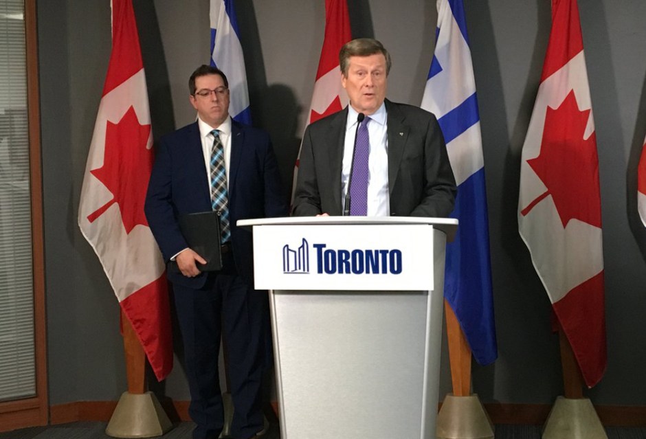 “Our ability as a city to continue to move forward is in question due to a combination of these very ill-advised budget cutbacks, harsh measures imposed on cities and towns across Ontario without warning, some of them imposed more harshly on Toronto than any of the other cities and towns in the province for reasons that are unknown to me,” said Tory.