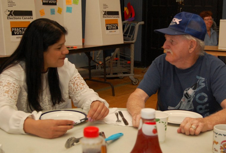 The normal Wednesday morning community breakfast at Lakeside HOPE House had some special guests this week, another sign that the Federal Election is just a few weeks, if not a few days, away. Six of the candidates wanting to be Guelph’s next MP visited HOPE House Wednesday morning talk politics with some the City’s most vulnerable people over some scrambled eggs, sausage, and chocolate chip pancakes.