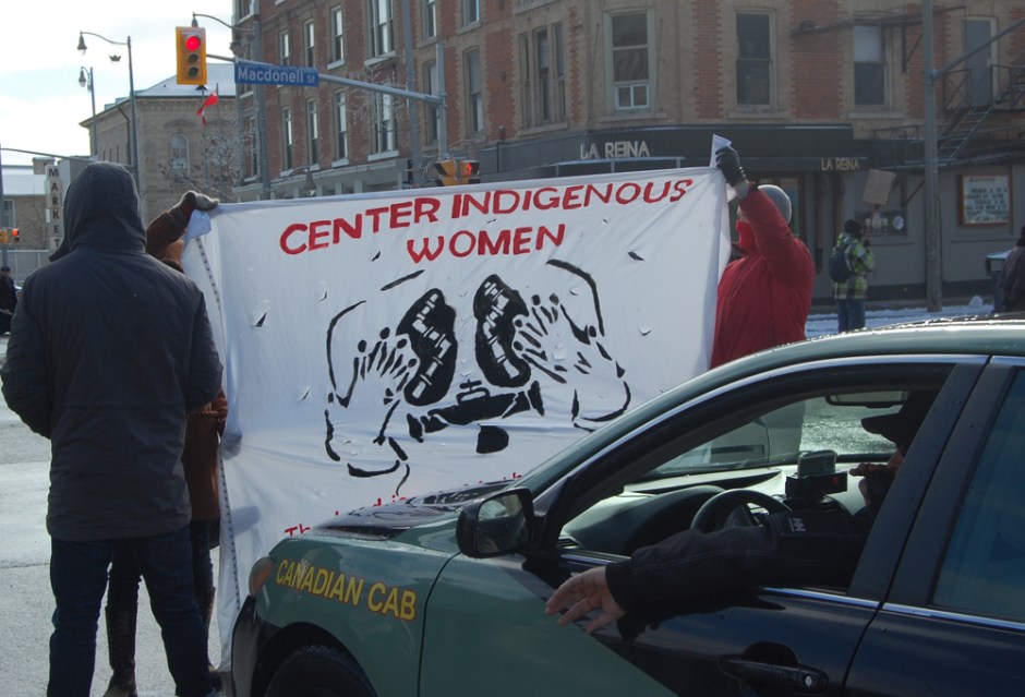 A leisurely drive downtown on Sunday afternoon might have caused some frustration if you wanted to pass through the corner of Wyndham and Macdonell during the noon hour. A group of about 40 activists were demonstrating in solidarity with the Wet’suwet’en hereditary chiefs, who, on their ancestral territory in British Columbia right now, are running out of time to stop the development of a natural gas pipeline.