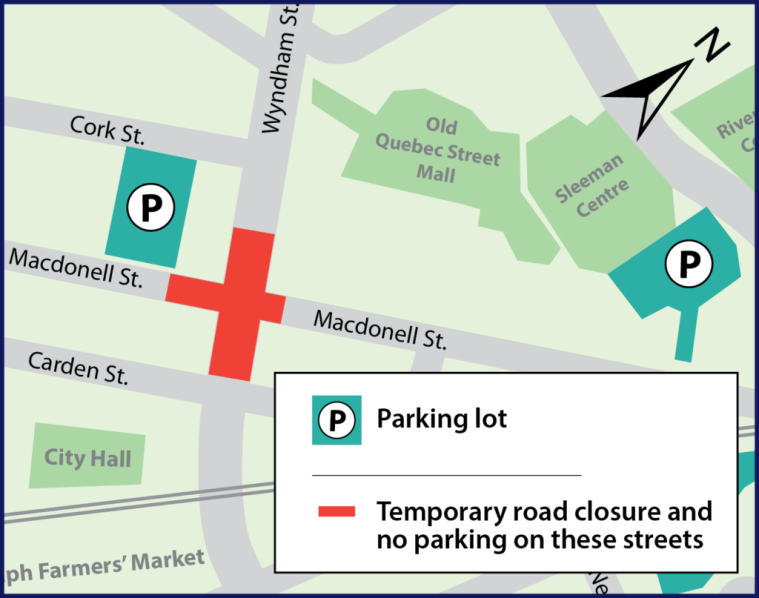 All other conditions will remain the same and the area will still be open to pedestrian and cycling traffic while Guelph Transit routes 3, 8, 9, 10, 11, 12, 13, 20, 99, Community North and Community South will all be diverted through to Labour Day. To see the full extent of those changes you can go to the Transit website.