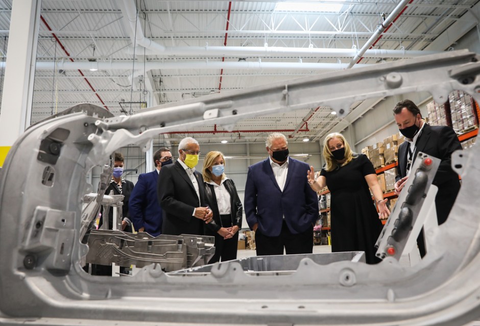 From the floor of the Frank Hasenfratz Centre for Excellence in Manufacturing, Ford praised “Ontario manufacturing giants” like Linamar who have “stepped up” and, after a few short months, is now developing 10,000 made-in-Ontario ventilators.