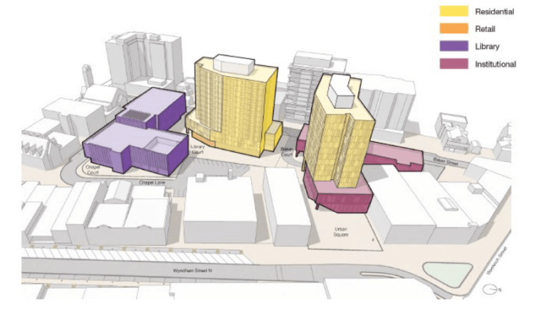 Baker District Project Update – As promised, we’ve received the alternative vision for the Baker District, and the updated plan to build the new main Guelph Public Library. As previously reported, the new library will now be a standalone building on the south end of the site along Chapel Lane. According to the staff report, this will simplify the legal agreements, lower construction costs, provide more flexibility, and will allow better control on operating costs and expenditures on the project.