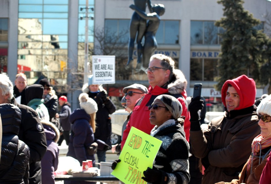 This past Saturday, some 60 people marched through downtown Guelph to support small businesses forced to close again in the lockdown. It’s a laudable goal, and important, but among the people looking to raise voices for shoppes and restaurants were anti-vaxxers. The government has made it known that the road back to normalcy is paved with vaccines, so if stores are ever going to re-open, people need to get shots. So how did these two groups team-up for one protest?