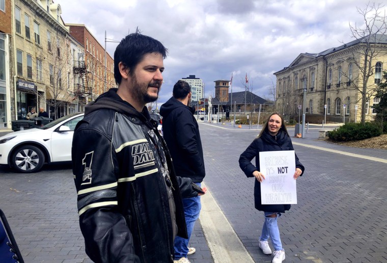 For the most part, the protestors were allowed to wallow in their misinformation and conspiracies. One older man in a mask, who said he was a volunteer at a long-term care home, took exception with the gathering, and he was initially met with hostility from many people in the crowd, but a few urged calm, and asked everyone to listen to a contrarian voice.