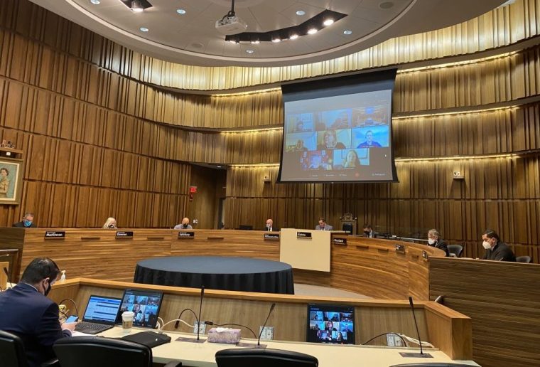 City council kicked off another month of meetings by holding its first true hybrid council meeting in the council chambers. The mayor, five councillors, the exec team and the media were all in the chamber while everyone else beamed in on the big screen.