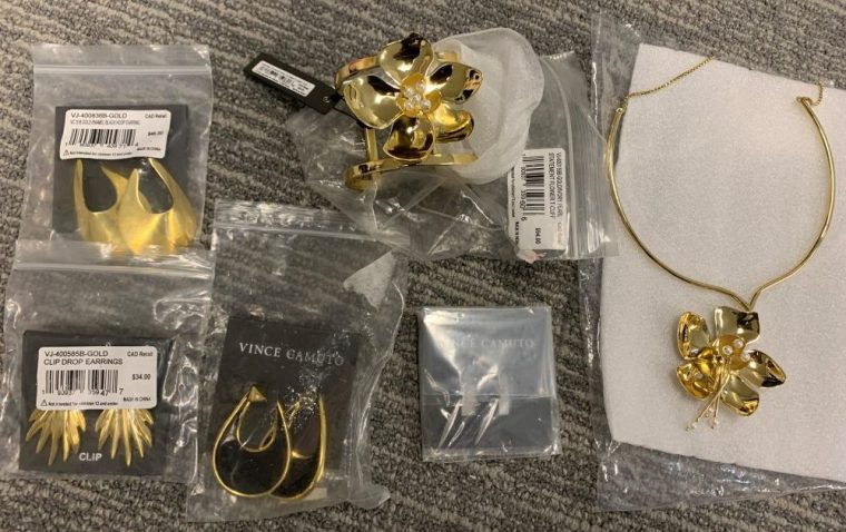 A 28-year-old Guelph man faces a number of charges including possessing stolen property over $5,000, possessing stolen property under $5,000, possessing a prohibited weapon, driving while suspended and several breaches of court orders. Members of the Break Enter Auto Theft (BEAT) Unit approached the man while he was pumping gas on Silvercreek North on Tuesday morning, and they discovered that his Jeep was stolen. A search of his backpack revealed a spring-assisted knife and suspected stolen property including several pieces of jewelry, keys for two vehicles, cheques and identification. The stolen jewelry is pictured below, and if you recognize it call Constable Josh van Breda at 519-824-1212, ext. 7417, or email him at jvanbreda [at] guelphpolice.ca.