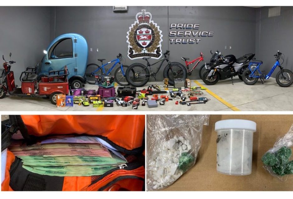 A 52-year-old Guelph man was charged with possession of stolen property over $5,000, trafficking in stolen goods, breaching a conditional sentence order and four counts of possessing controlled substances for the purpose of trafficking. The charges were made after the Guelph Police Service Break Enter Auto Theft (BEAT) Unit executed a search warrant on a residence in the area of Willow and Edinburgh Thursday morning, the culmination of a month long investigation.