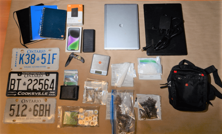 So what all did they get? There was $362,500 worth of cocaine, $30,200 of MDMA, $5,690 of MDMA pills, $160,250 of meth, $7,985 of Percocet, $4,000 of Oxy, $11,150 of LSD, $1,500 of mushrooms, and $8,800 of cannabis. The police also seized $62,165 in Canadian currency and $60,707 in high-end clothing, jewellery and watches. See a picture of the haul above.