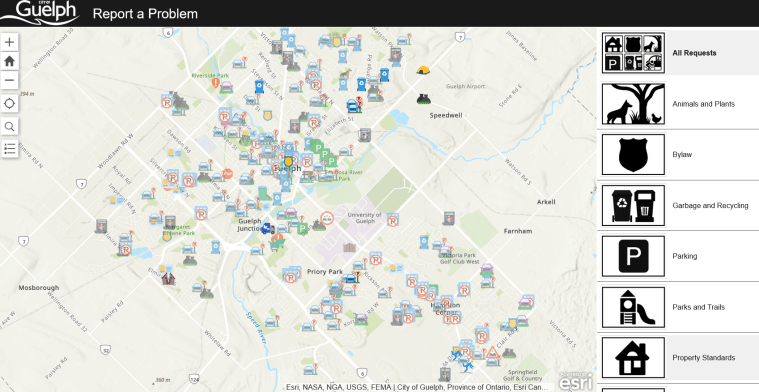 One of the improvements that staff showed off was an online map that allows people to report a problem to the City, whether that’s a broken streetlight or a missed garbage pick-up or graffiti on public property. There are now 68 potential services that can be flagged using the Report a Problem Map, and you can find out where and how to access it thanks to this timely City of Guelph press release.