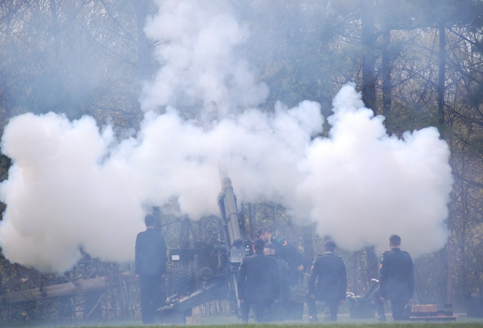 Along with several members of city council, members of the Guelph Police and Fire Department, and a couple of hundred Guelphites, York Road Park hosted a military parade featuring the 11th Field Regiment Royal Canadian Artillery, the local Guelph Army Reserve unit, Guelph Legion Branch #234, the Guelph Legion Pipe Band, Royal Canadian Sea Cadet Corps Ajax, the Navy League Cadet Corps Achilles, the 1882 Wellington Rifles Royal Canadian Army Cadets, and 121 Red Arrow squadron of the Royal Canadian Air Cadets.