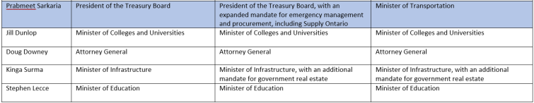 “As our province’s population and economy grow, it’s never been more important for us to build Ontario,” Ford said in a media release. “As we continue to attract billions of dollars in new investments to create better jobs with bigger paycheques, we have the right team in place to get it done. We’ll never stop working on behalf of the people of Ontario to build the homes, highways and public transit our growing communities need.”