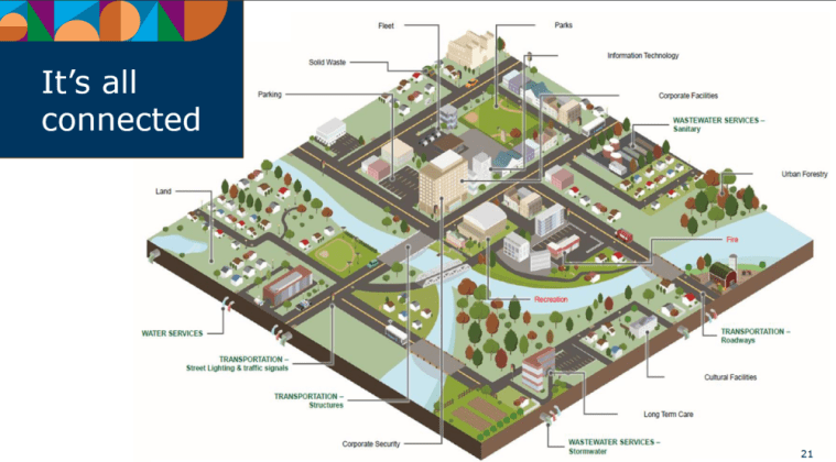 Much of the focus of the presentation was on asset management, which aims to balance strategic and master plans, climate action, capital projects, council and community input, operational and maintenance plans, and financial resources. This process is strained because of inflation and the loss of certain development charges and other fees due to provincial changes, and that means the City of Guelph will be constrained in how much it can do and how fast it can do it in.