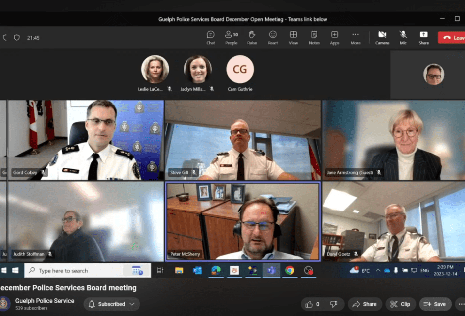 It was a short meeting for the Guelph Police Services Board to end 2023. There wasn’t much for the board to do, and they were two members short, but they did take this time in December to get themselves organized for next year; confirming the chair and the vice-chair, organizing the composition of committees, and talking about how the board will meet going forward. Here’s the recap (such as it is)….