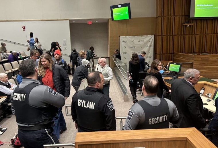 You might as well have popped a tent in the council chambers because it was an all-day affair. It started even earlier for some, a group of community activists protested the proposed Public Space Use Bylaw during rush hour, but at 10 am the action moved over to City Hall for the start of what was going to be a long and contentious meeting.
