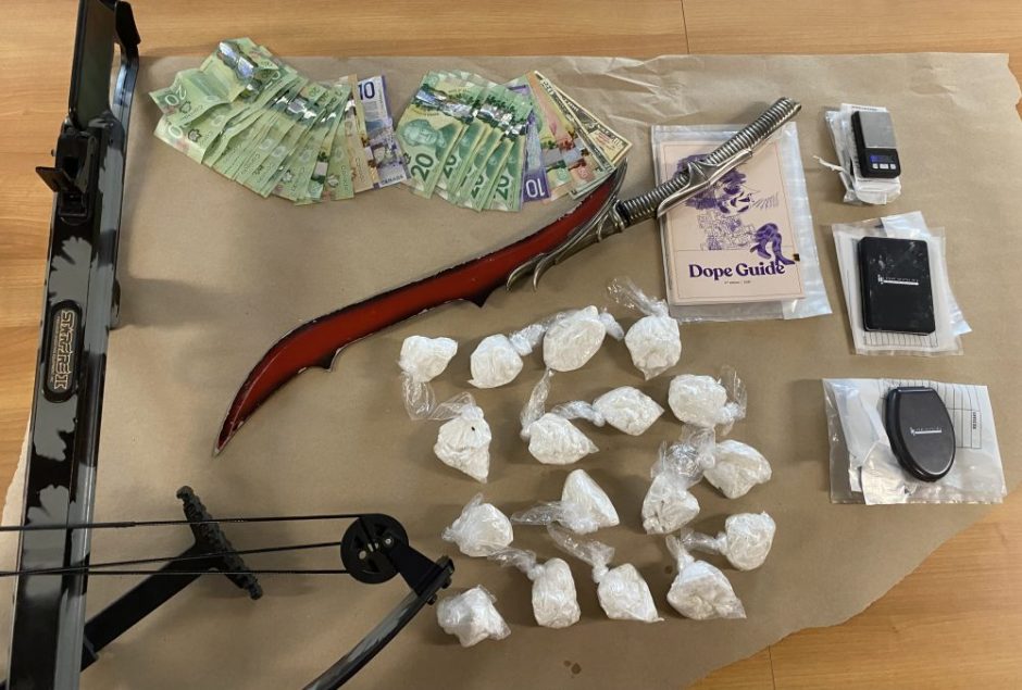 A 40-year-old Guelph man and 54-year-old Guelph woman were each charged with possessing cocaine for the purpose of trafficking after they were arrested as they arrived at his east-end residence Friday afternoon. During searches of the residence and the man’s vehicle officers recovered nearly half a kilogram of cocaine divided into smaller packages, contaminated drug packaging, a crossbow, a machete-style bladed weapon and $1,235 cash. The cocaine has an estimated value of $12,500. (See photo above.)