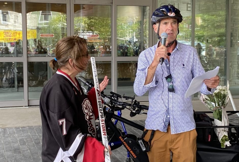 Ward 6 Councillor Ken Yee Chew, Guelph MPP and Green Party of Ontario leader Mike Schreiner were also on hand to help local cyclists remember the life of Bard, and so was Jennifer Juste, Manager of Transportation Planning at the City of Guelph. She said that her and her team were looking at the logistics of protected bike lanes on Victoria just before Bard’s fatal accident.