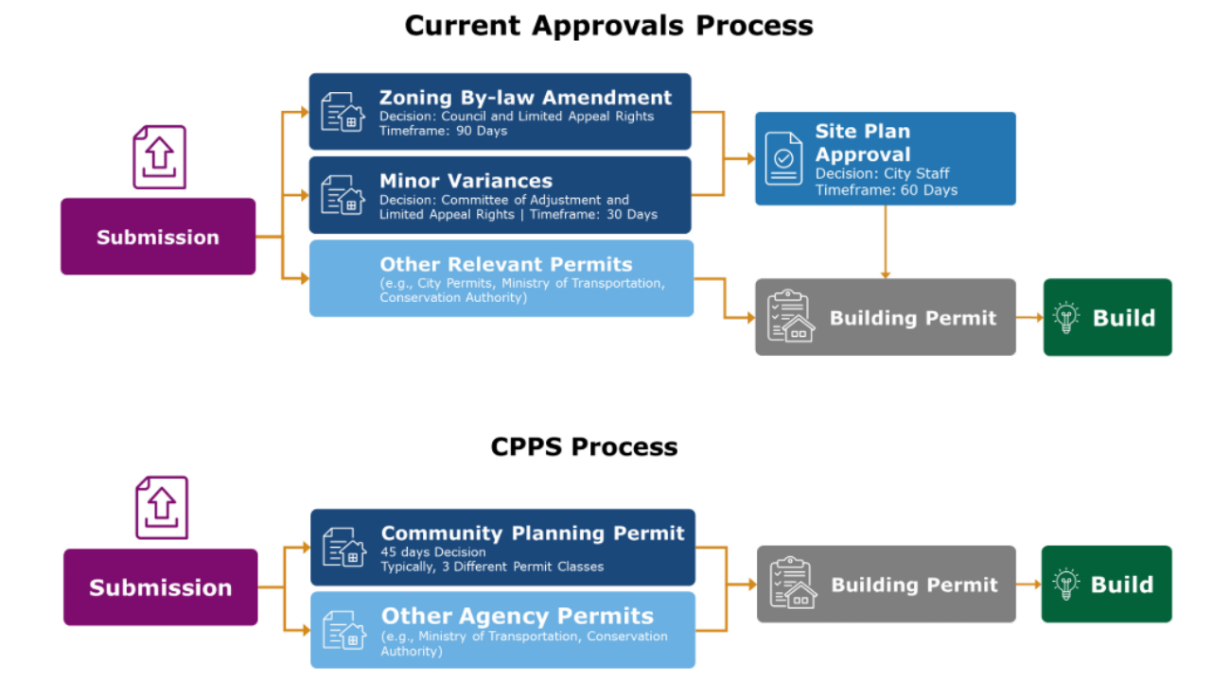 What’s the upside? Securing more development that suits community needs through trade-offs, like more height for deeply affordable units for example. The CPP will supposedly help make it easier to facilitate planning already approved in the Official Plan and the Comprehensive Zoning Bylaw, while focusing on the creation of a better mix of uses and building types while increasing density and providing more active transportation and transit connections.