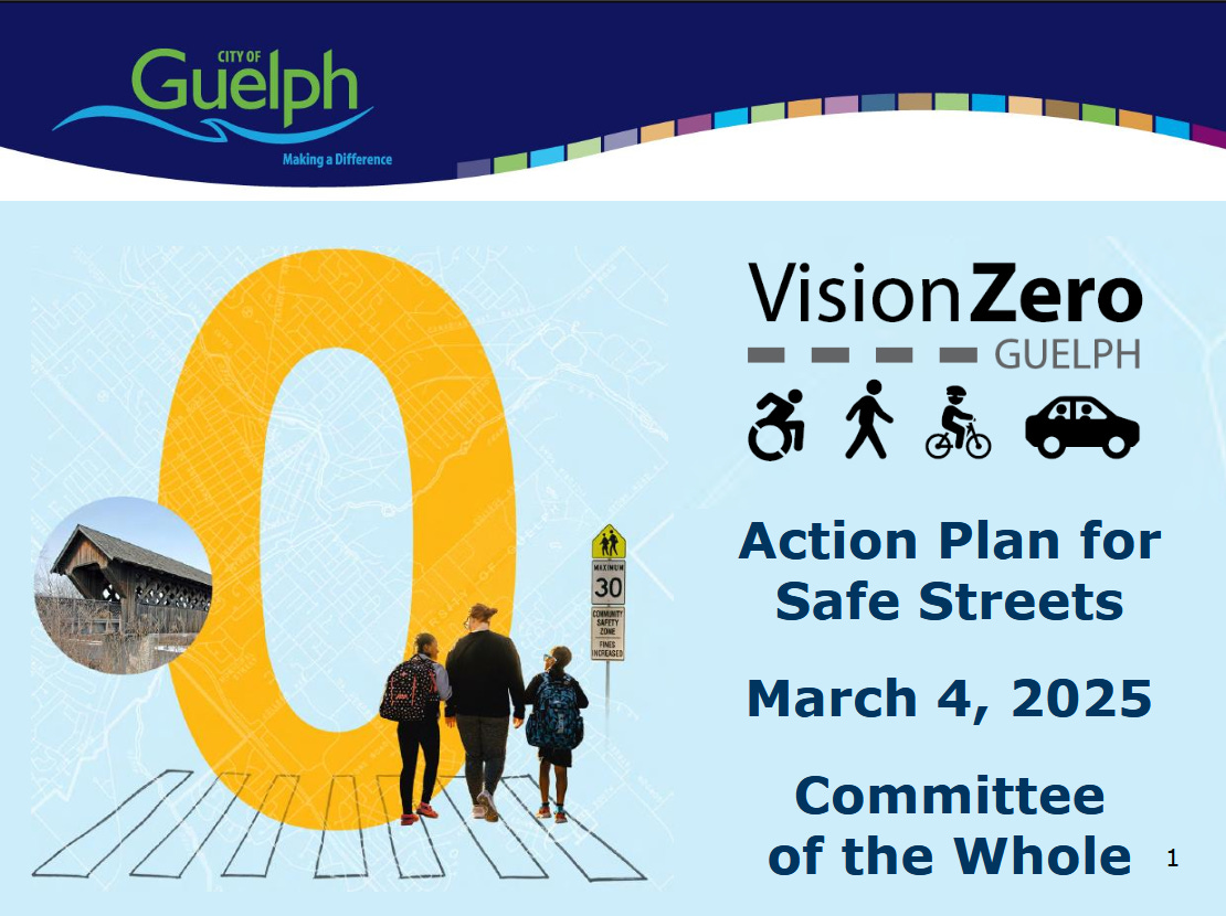 The last item was the Vision Zero Action Plan, which will look at expanding community safety zones beyond schools and the installation of more automated speed enforcement cameras to help curb speeding and cut down on road injuries and fatalities. Three delegates spoke about the challenges of being a road user who’s a pedestrian or cyclists, including Guelph Coalition for Active Transportation chair Andrea Bidgood who described her experience being hit by a car while on her bike in 2020.