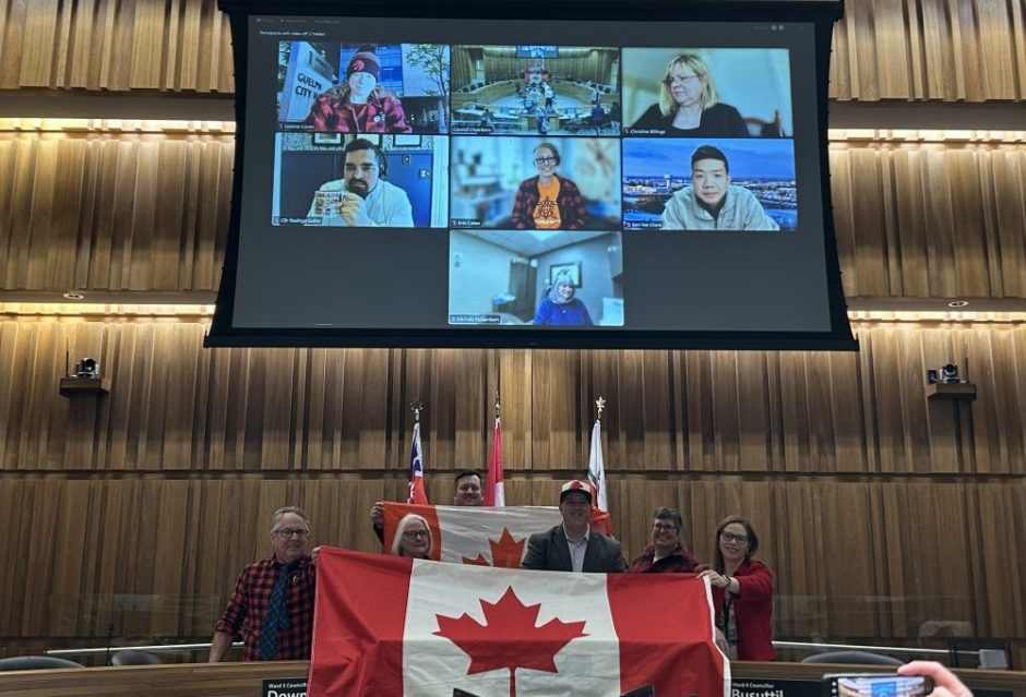 In one last bit of business, council tackled the trade war. Three motions were passed directing the City to collaborate with the business community and other levels of government through new initiatives, to take steps to avoid further procurement from U.S. companies, and to seek clarity from the Ontario government to make sure any changes to procurement have no unintended challenges. Guthrie reiterated again that Guelph’s procurement is 98.5 per cent Canadian and 29 per cent local, and that this is a thoughtful reaction to bring the community together to fight the U.S. tariff threats. Then council posed for a patriotic photo.