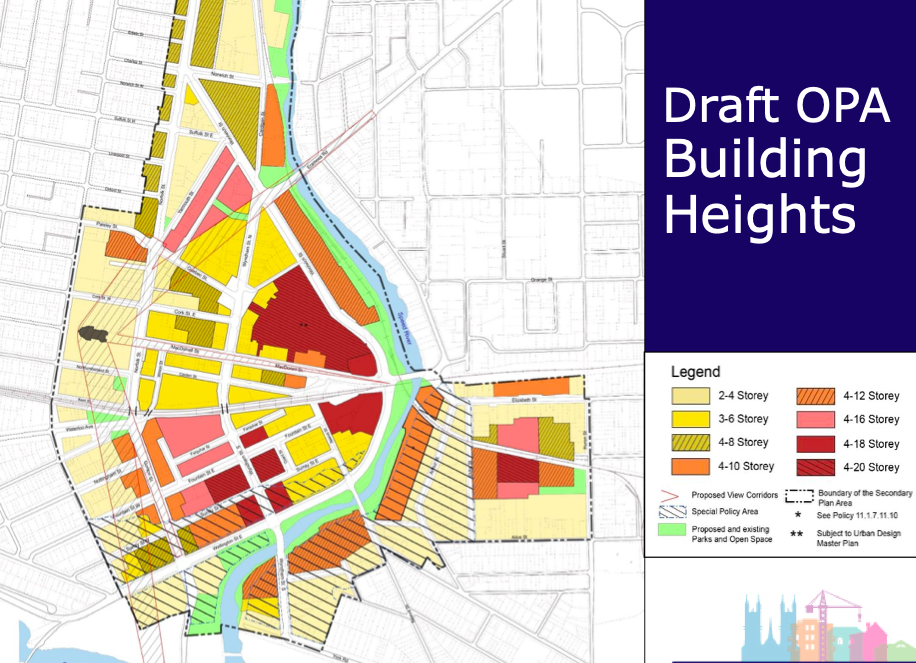 Laughlin is back. The recommended OPA, she says, aims to place tall buildings where their impact on public spaces and common areas are limited. It also aims to allow “context sensitive” height will protecting cultural heritage resources, especially the Basilica with five main viewing corridors.