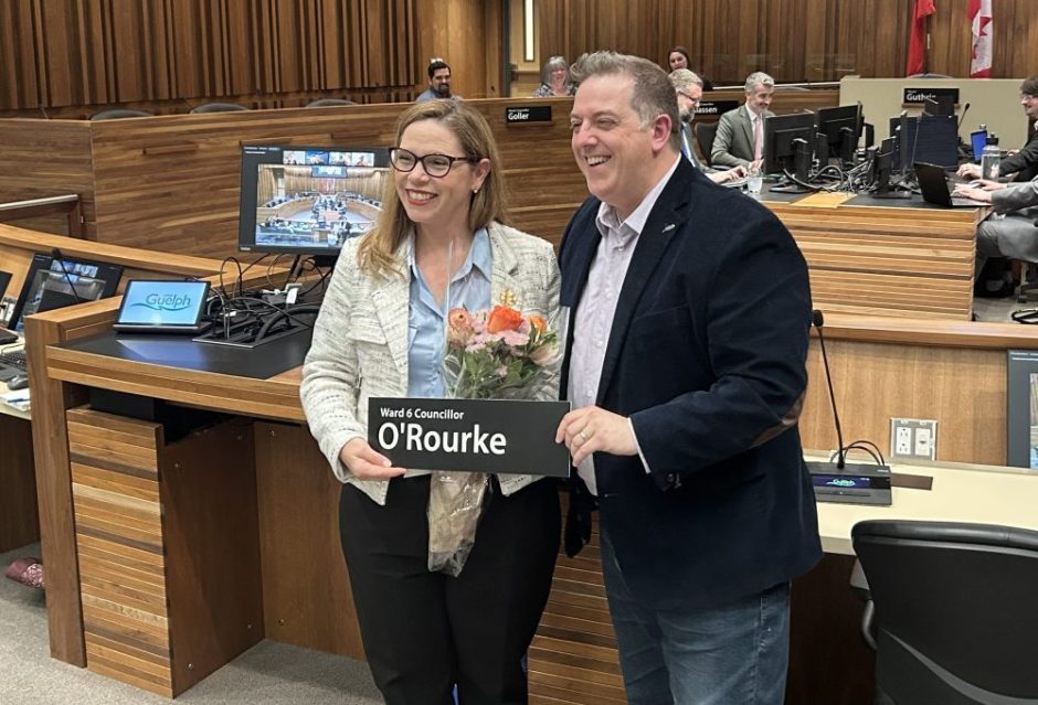 Among the usual recognitions at the beginning of Committee of the Whole there was a particular one. Councillor Dominique O’Rourke returned to the chambers for the last time before taking up her new role as Guelph’s Member of Parliament. Mayor Cam Guthrie praised her for seven years of dedication and hard work on council, and then O’Rourke thanked council, staff and her constituents before pledging to carry on the work of housing and climate action in the House of Commons.