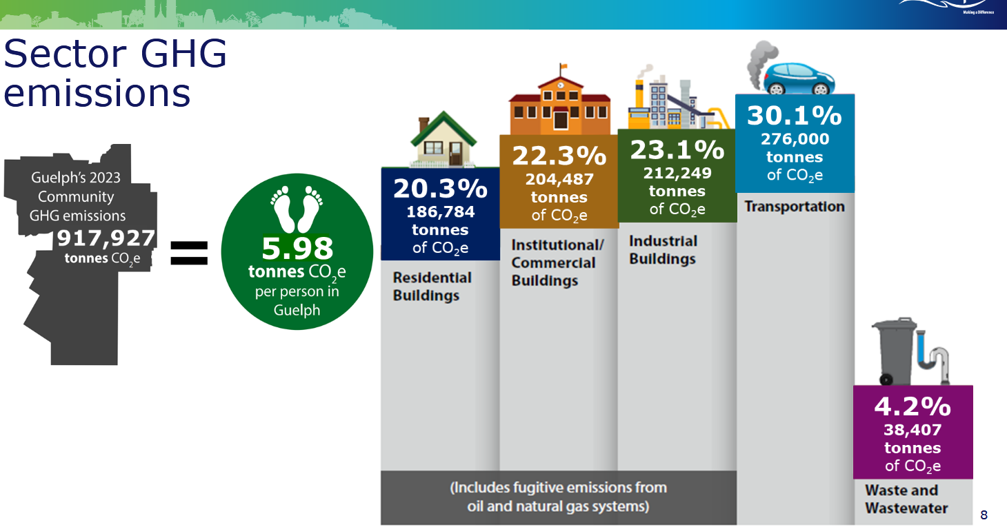 That left one item on the agenda, the Guelph Community Call to Climate Action. Manager of Energy and Climate Chane Bryan Ho-Yan explained to committee that it’s a call to collection action by showing the Guelph community changes they can make to eliminate the approximate three tonnes of carbon per person we all need to lose if Guelph is get down to the goal of 416,245 tonnes by 2030.
