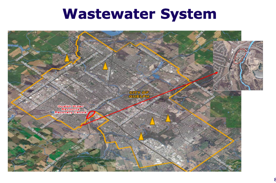 Tim Robertson, Division Manager, Wastewater, overviews the wastewater: Guelph constructed a separate sanitary and storm sewer in the early 1900s. The focus today is on waste as a resource according to this acronym: Water Resource Recovery Centre.