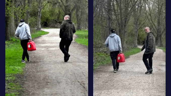 Approximately 9:20 p.m. May 5, emergency services were called for a large brush fire in the area of Pacific Place and Municipal Street, and it’s believed the two men in the images below might have relevant information about the fire. If anyone is able to identify them, or can provide any other information about the fire, please contact Detective Constable Cecilia Hudecki at chudecki [at] guelphpolice.ca, or Detective Constable Kaith Kolodziejczak at kkolodziejczak [at] guelphpolice.ca.