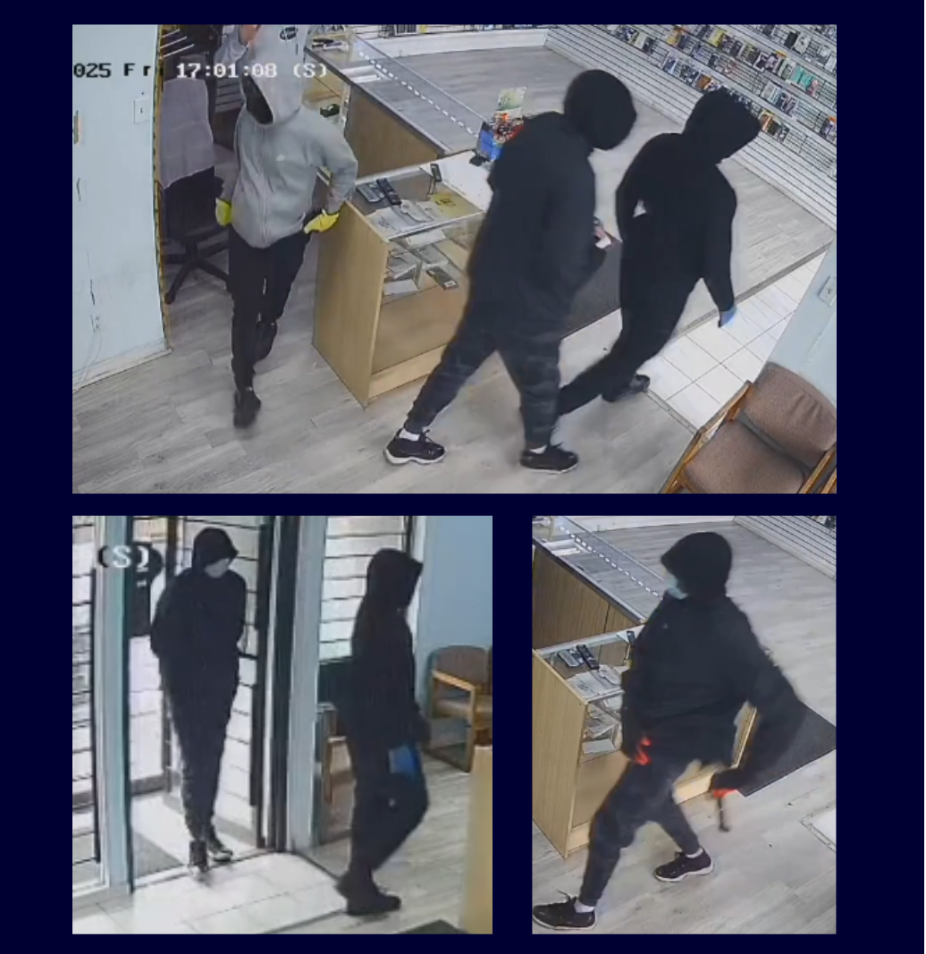 Police are continuing to investigate after three males – one armed with a hammer – robbed a west-end business Friday afternoon. Just before 5 pm last Friday, three men entered a business on Silvercreek Parkway North, locking the door behind them. They went behind the counter, removing several phones as well as cash from the register. The lone employee was not physically injured.