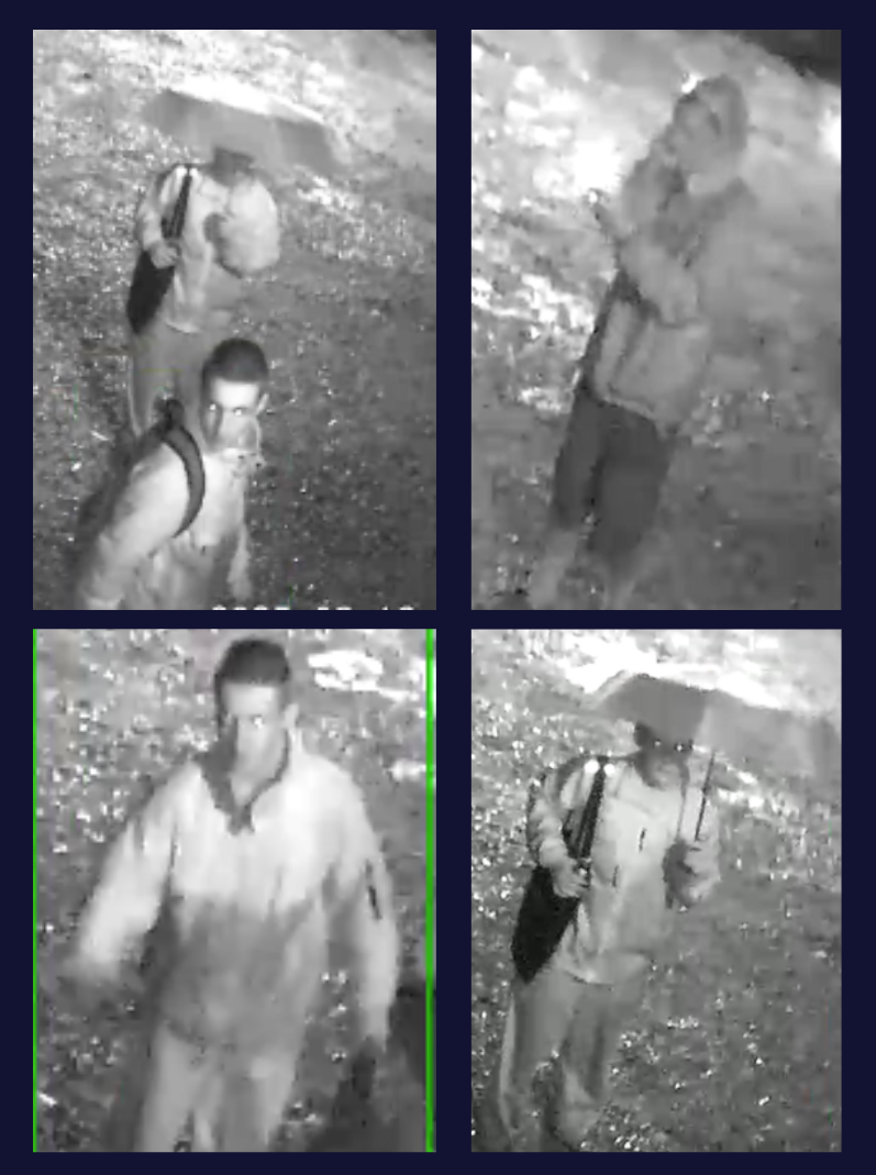 On August 13, the owner of two buildings on Wyndham near Cork reported that they had both had been vandalized with black spray paint. The suspects had even used a ladder to spray high up on the back of the building. Several suspects were caught on security video. (See photo, right.) Anyone with information or who recognizes the individuals in the photos is asked to call Constable Todd Van Iersel at 519-824-1212, ext. 7557, email tvaniersel [at] guelphpolice.ca.