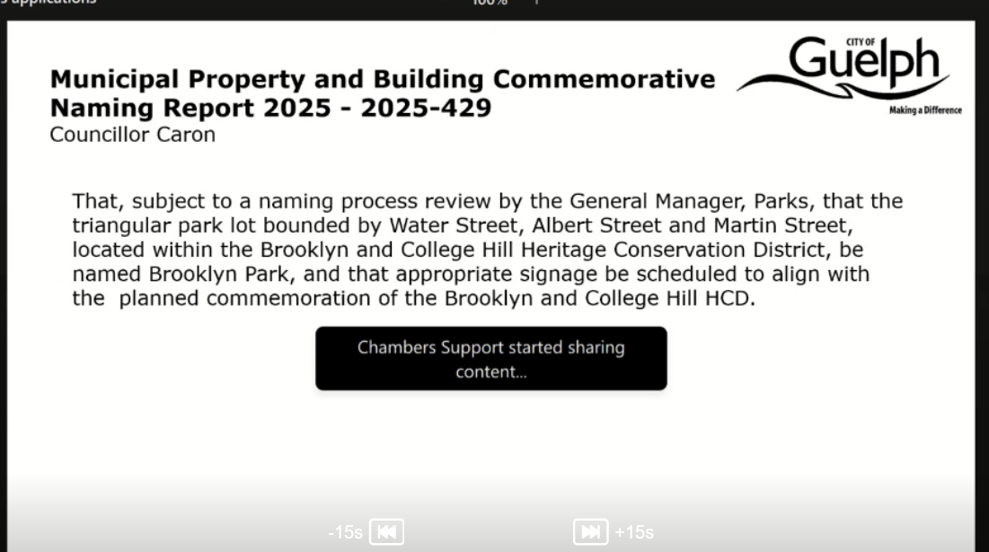 Downer seconds the main motion. Cllr Caton notes that the neighbourhood is happy with the name Sloan Hill Park and are excited about the design process. It’s approved.