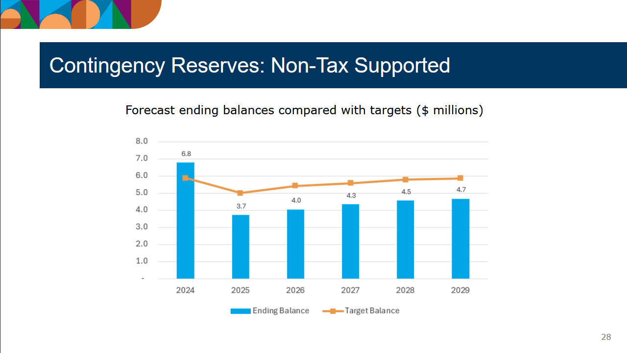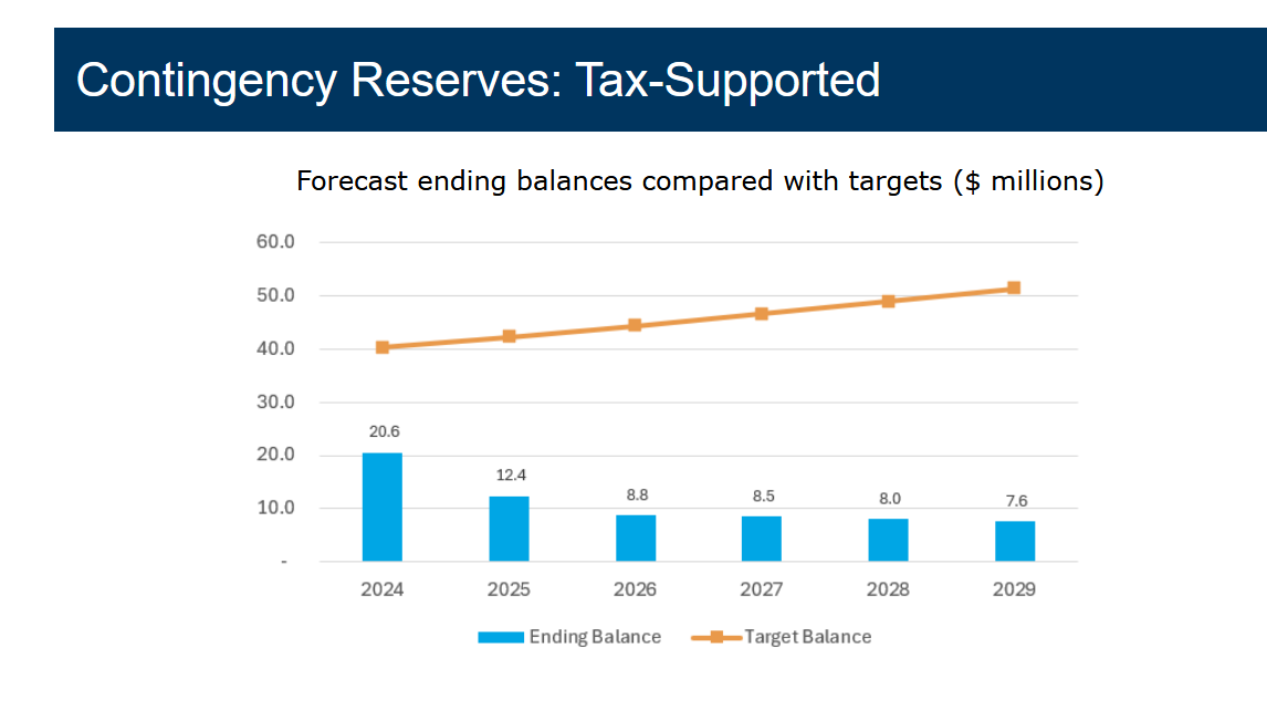O’Dwyer notes that the usage of reserves for increased social services costs and the hospital levy have been a drain. The tax contingency will have a balance of less than a million dollars at the end of this year when it should have $5 million stored away. Staff are *strongly* recommending not using it for anything else in 2026. Replenishing the reserves is going to be a project for the next multiyear budget cycle.