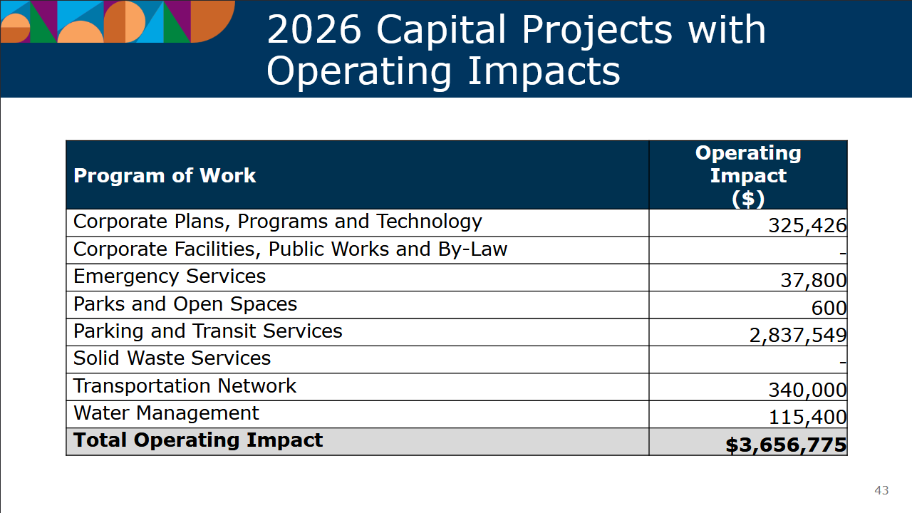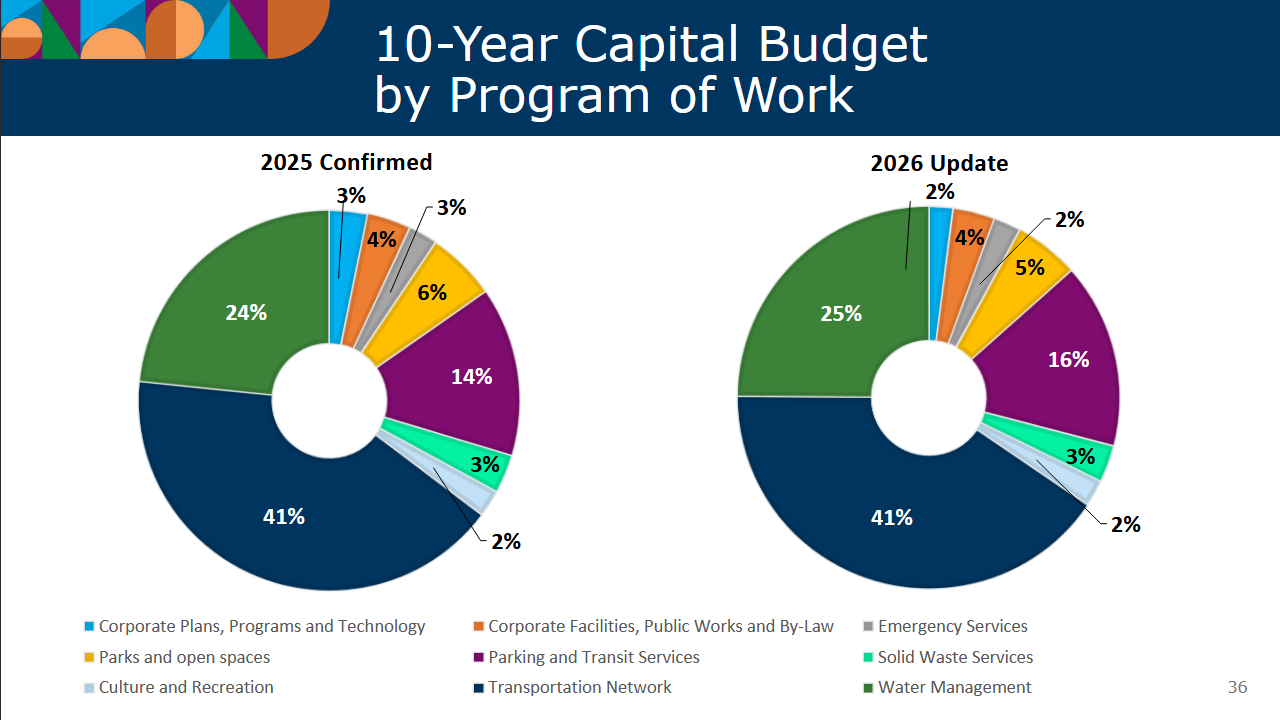 In terms of growth, these projects have continued to move forward even with slowed housing numbers. Work on York and Speedvale will continue, Orin Reid Park upgrades will also proceed in 2026, but the Beaumont Park will have to be delayed due to technical issues on site. Also, funding assumptions will change for Vision Zero project if the Ontario government proceeds with cancelling automated speed enforcement cameras.