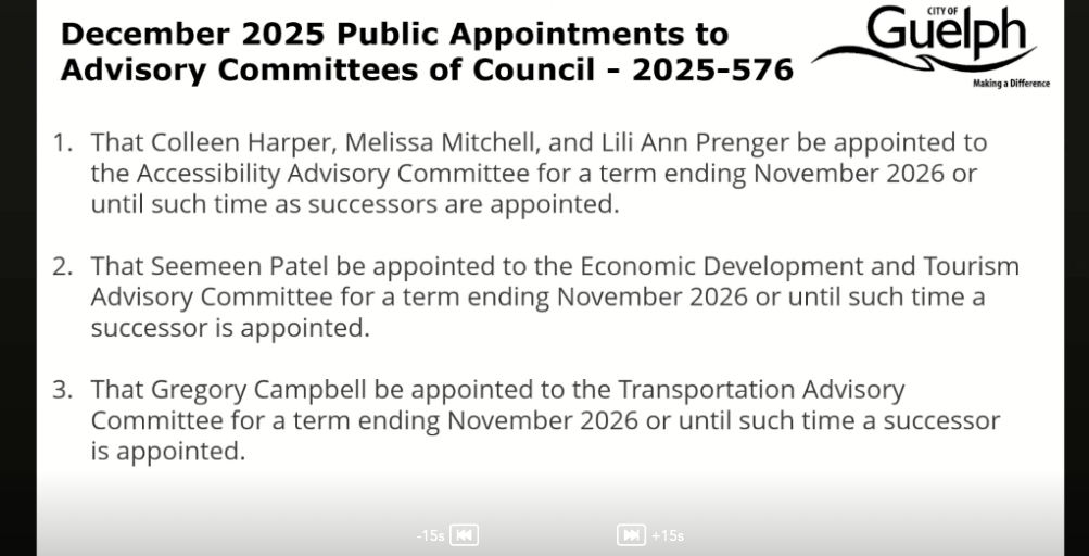 - And, finally a motion on Closed December 2025 Public Appointments to Advisory Committees of Council…