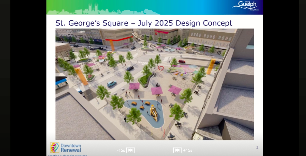 Cllr Caron asks about the design of the square, is this an area the Guild of Storytellers can use for their events? VanGeest says there could be a designated space for storytellers, and they could even make it a feature.