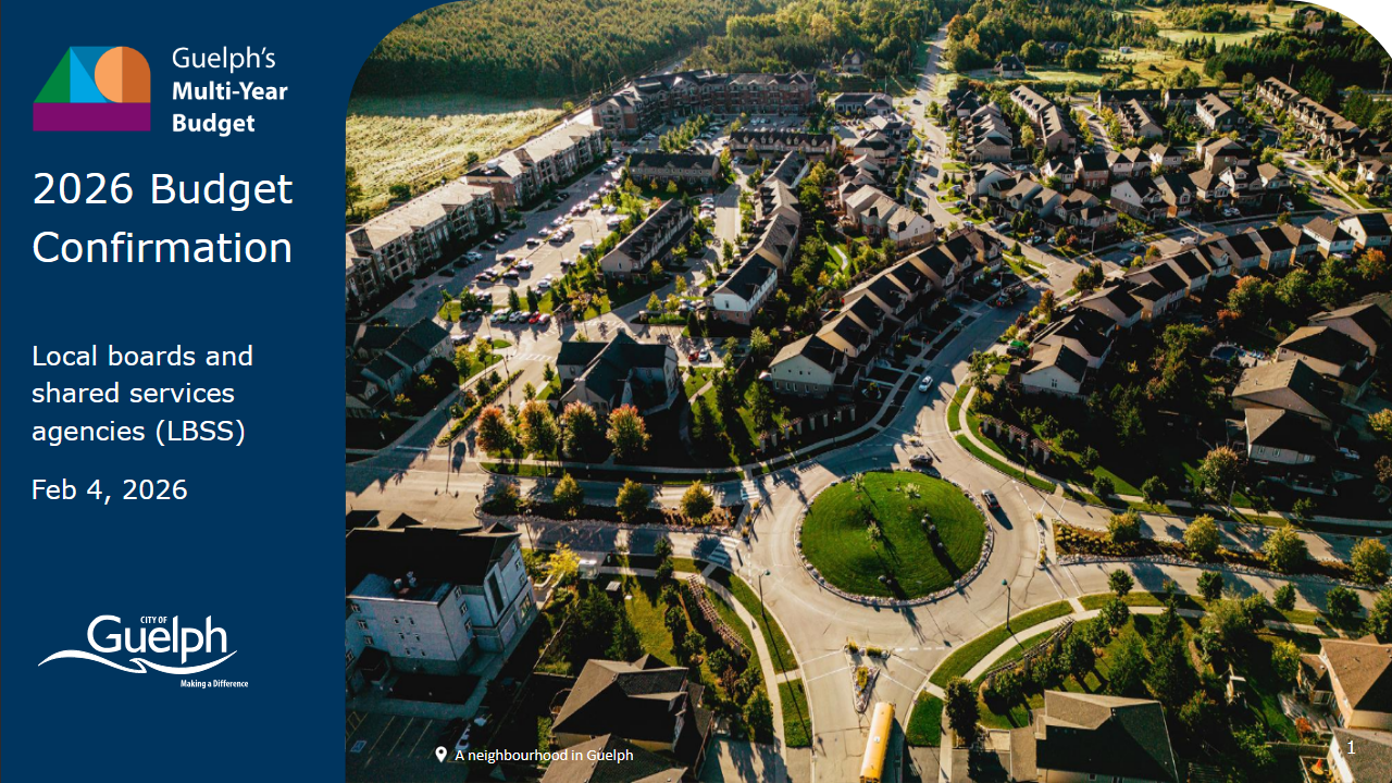 For the most part, this was a conversation about three services: The Guelph Police Service, the Guelph Public Library and social services administered through Wellington County. Shanna O’Dwyer, General Manager of Finance and City Treasurer began the meeting by pointing out that in 2019, the Guelph budget was split 66/33 between the City and the LBSS, but for 2026 that ratio is now 64/36. (More on that shortly.)