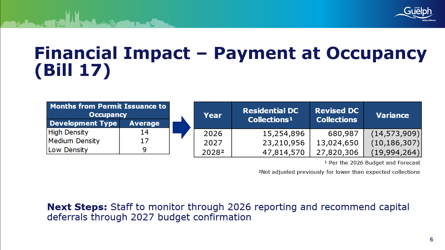-Bill 17: Payments of residential DC’s now at occupancy, and Interest no longer collected on deferred payments